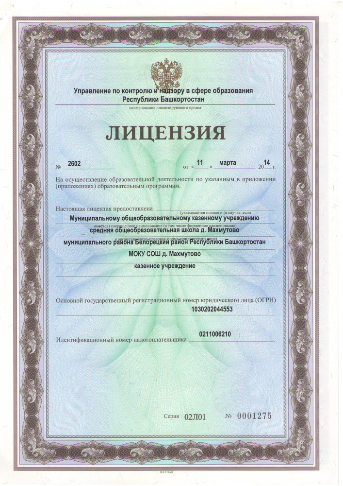 Муниципальное общеобразовательное казенное учреждение средняя общеобразовательная школа д. Махмутово муниципального района Белорецкий район Республики Башкортостан