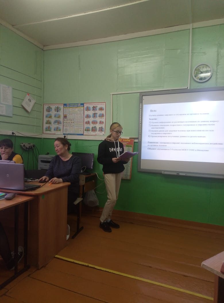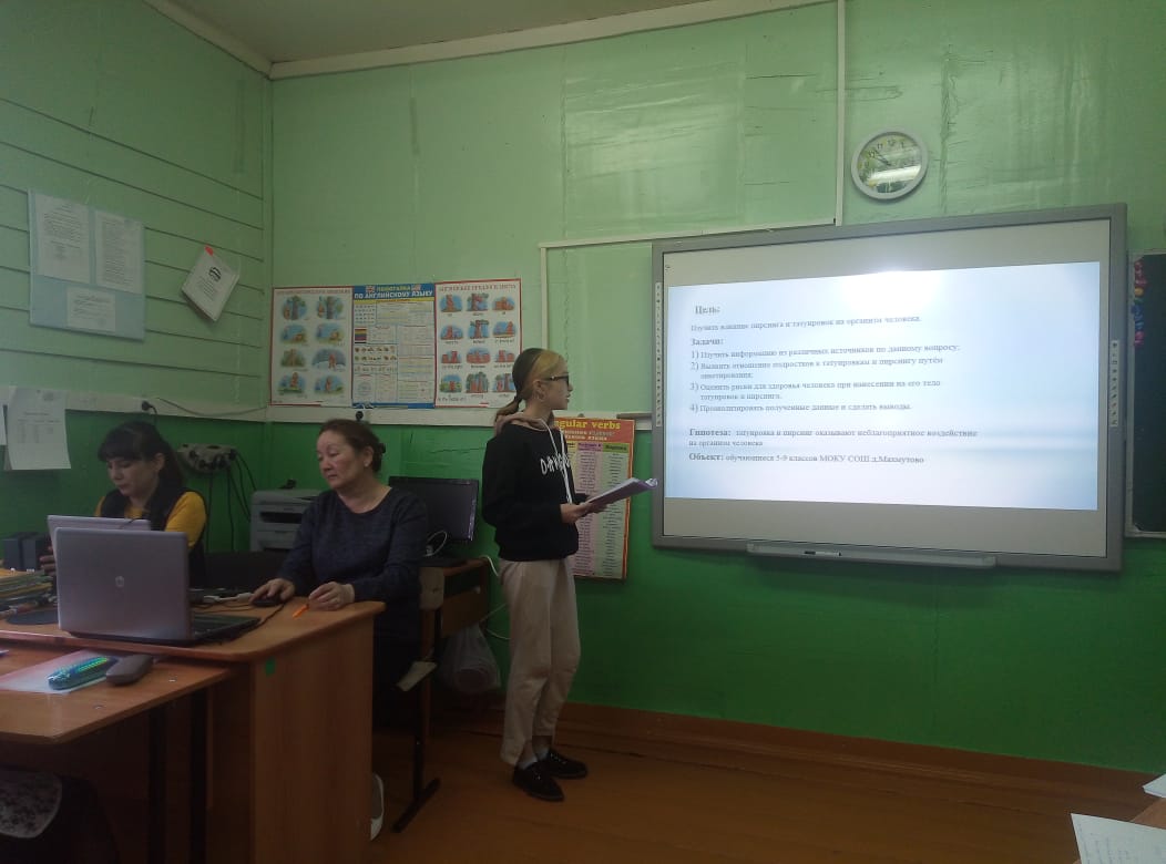 Сегодня в нашей школе прошёл очередной этап защиты индивидуальных итоговых проектов обучающихся 9 классов. Для защиты проектов учащиеся подготовили презентации и представили практические результаты своих исследований. Гиниятуллина Анна подготовила проект по физической культуре по теме " ГТО — это здоровье", Камалетдинова Айлина подготовила проект по химии на башкирском языке по теме " Сәй"("Чай"), Сафиева Регина по биологии "Влияние пирсинга и татуировок на организм человека". Работы были разные по содержанию, но все очень интересные. Выражаем особую благодарность руководителям проектов Мардановой Альфие Рамильевне(учитель физической культуры), Яруллиной Айгуль Рашитовне(учитель химии) и Сафиуллиной Лидии Мужавировне (учитель биологии) за помощь в подготовке учащихся.
