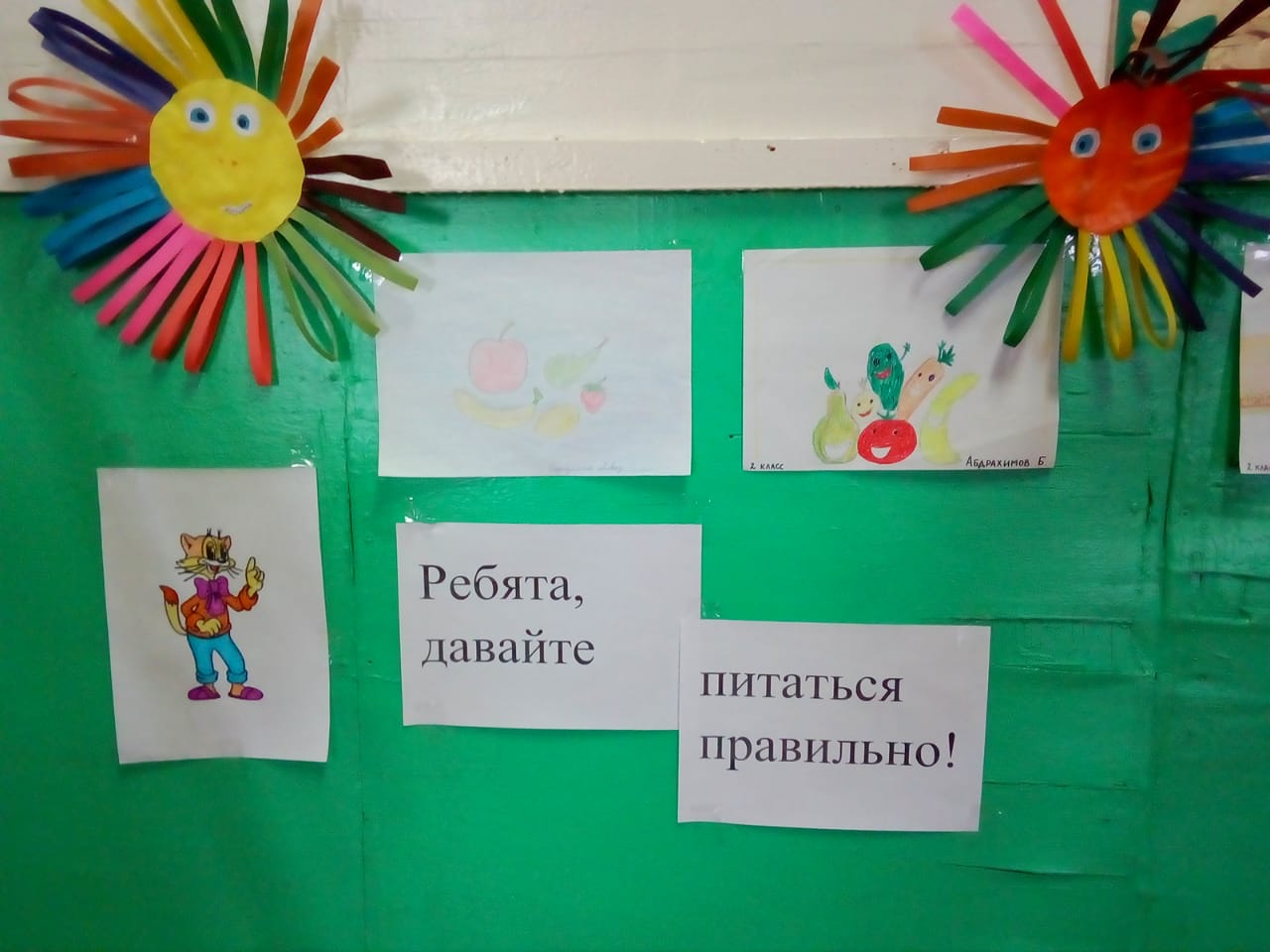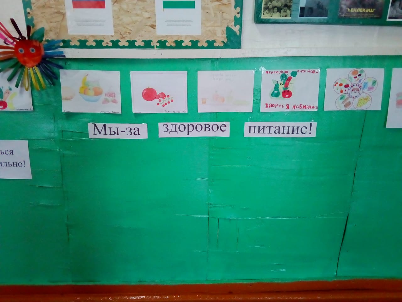 Учащиеся 2, 3, 5,6 и 9 классов украсили коридоро школы красочными рисунками и стенгазетами.